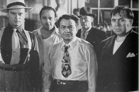 Americans’ idea of organized crime in those days was represented by characters like Edward G. Robinson’s Johnny Rocco, the past-his-prime exiled gangster in the 1948 movie Key Largo, blustering vainly about Prohibition coming back someday and the gangs working together this time.