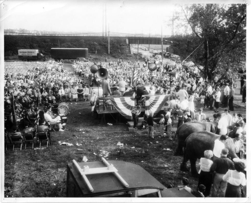 Secaucus town historian Dan McDonough, who attended these rallies with his father, remembered them vividly. “He would have live donkeys, live elephants, and I’m not just talking one elephant, he’d have three, four elephants there,” McDonough said. “The donkeys would be there, the pigs would be there. It was almost like a petting zoo.”