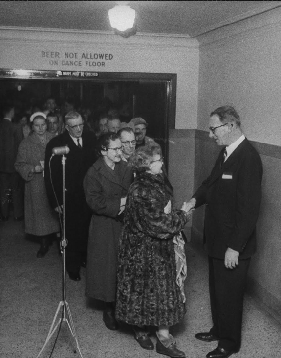 Baker believed Kefauver “was punch-drunk with fatigue and so groggy he was running on pure reflex.” He tested this by joining the handshake line himself. He’d traveled with Kefauver for several days and had interviewed him over lunch earlier that day, so Baker figured that Kefauver would recognize him.