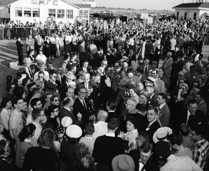 Stevenson’s running mate spent a lot of time in farm country, in precisely tin he sorts of places that the Democrats made gains in November. And around the time that Newsweek issue came out, Kefauver came to Missouri, stumping in GOP-friendly farm country… and drawing impressive crowds.