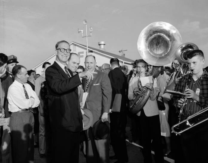 The crowd included the marching band from Parkview High School, which greeted Kefauver with “the inevitable ‘Tennessee Waltz,’” as the Springfield Leader and Press put it. Kefauver pasted on a smile as pretended to conduct the band for a moment before cheerfully welcoming the assembled crowd.