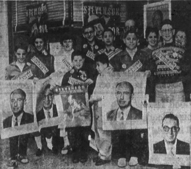 Following Stevenson’s nomination and the kickoff of the fall general election campaign, students at Great Neck High School formed the initial chapter of TASK. They made their official debut on September 11, welcoming Kefauver as he visited the campaign’s headquarters in New York City to kick off Mayor Robert Wagner’s campaign for the US Senate.