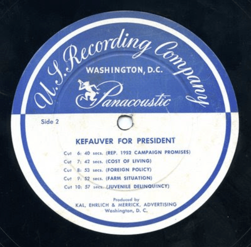 Trussell mentioned that these “commercials” were being put on vinyl records that could be sent to radio stations and inserted into “a portfolio for key supporters to use where Mr. Kefauver can’t get close enough to touch or talk to a voter.”